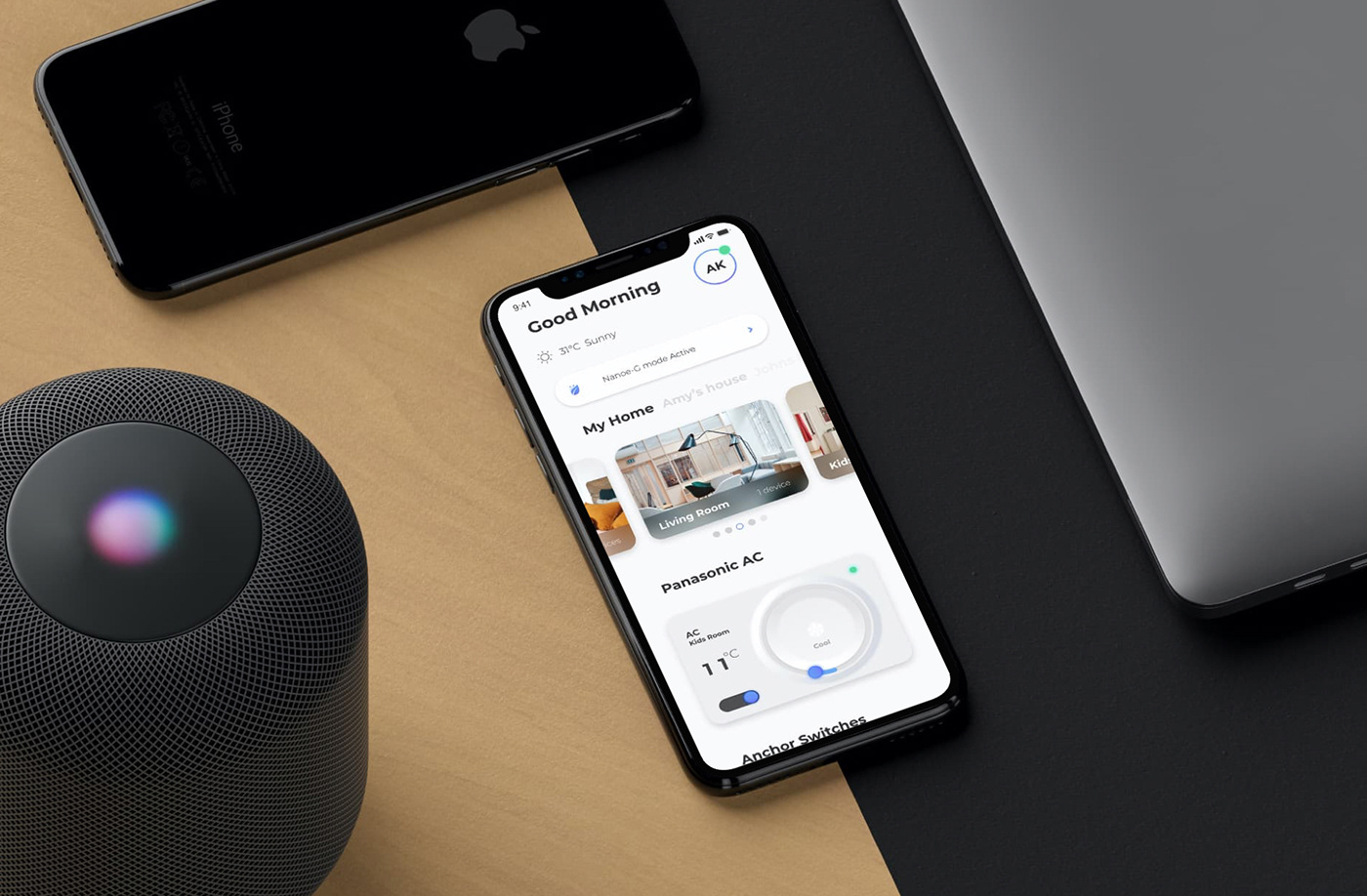 Panasonic Miraie, conceptualized by Panasonic and executed with Analogy Design, launched in 2019 as a unified smart home app.
